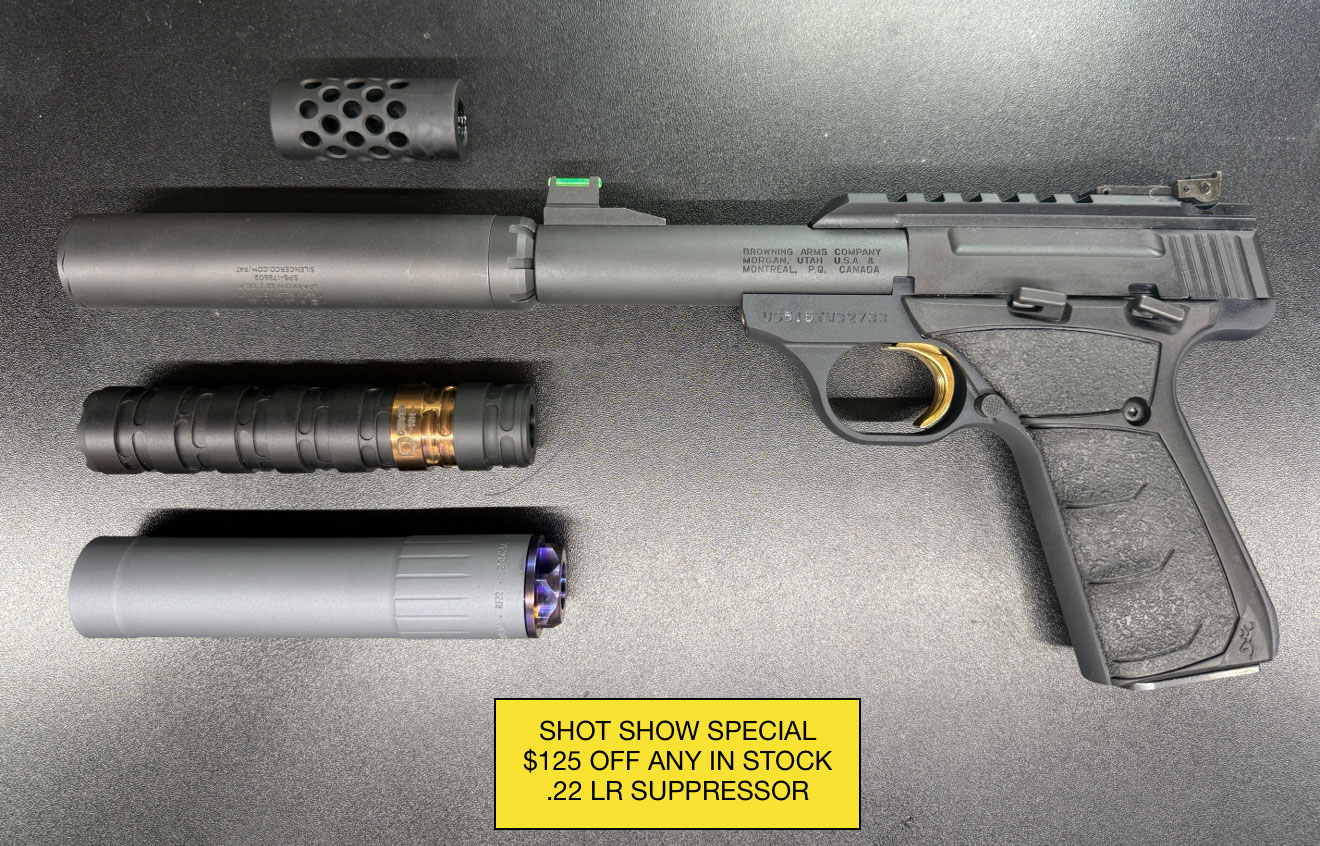 $125 off any in stock .22 LR suppressor. Must Ask for the Show Price!
